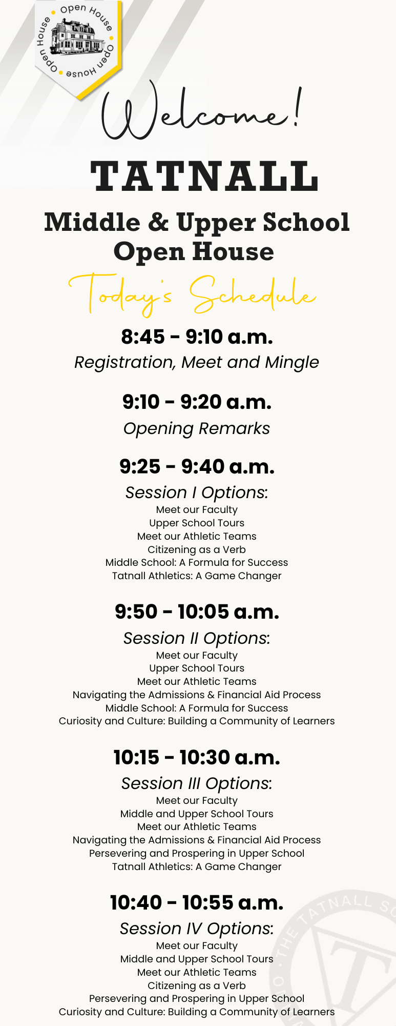 We look forward to welcoming you to our Middle and Upper School Open House on Saturday, November 1! Registration will begin at 8:45 a.m., and the program will run from 9:00 to 11:00 a.m.